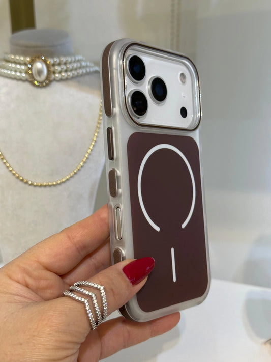 Magsafe Uyumlu Renkli iPhone Telefon Kılıfı Kahverengi