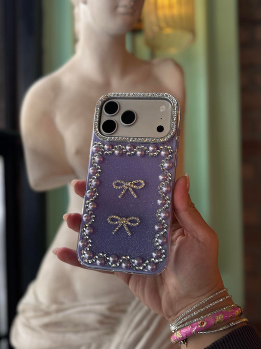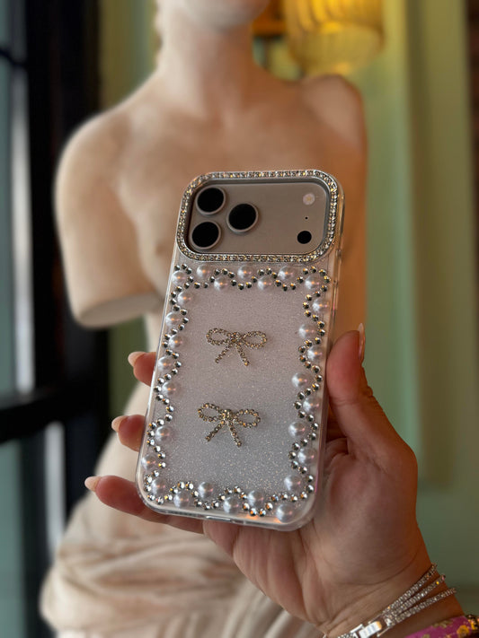 İnci Fiyonk Taşlı iPhone Telefon Kılıfı Siyah